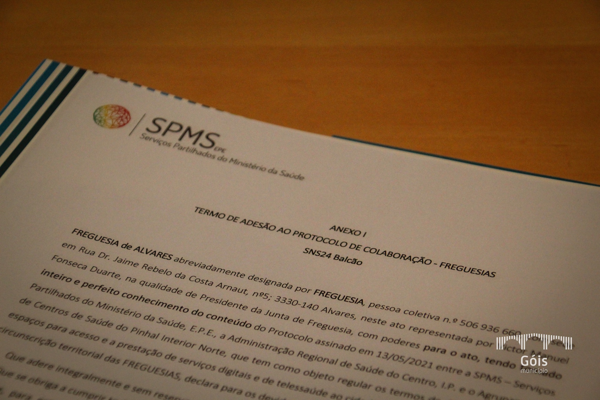 A assinatura do Termo de Adesão ao Protocolo de Colaboração - Freguesias – SNS 24 Balcão, no seguimento da proposta de instalação do Balcão SNS 24 nas freguesias do concelho, apresentada pela Câmara Municipal, decorreu na sede da Junta de Freguesia de Alvares. A cerimónia contou com a presença do Diretor Executivo do Agrupamento de Centros de Saúde Pinhal Interior Norte, Victor Bernardo.