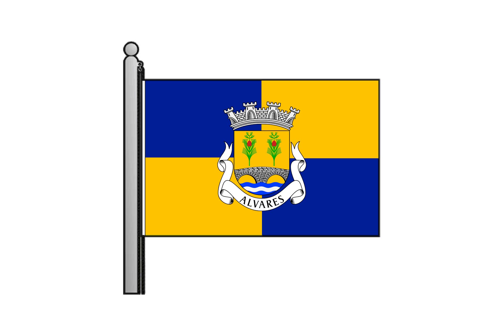 Listel de prata com a legenda a negro “ALVARES”.